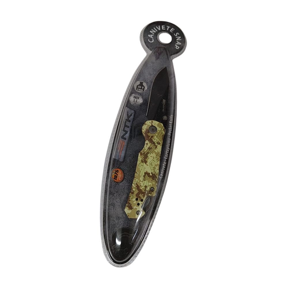La cortapluma Snap de Nautika es una herramienta versátil y resistente, ideal para actividades al aire libre como camping, pesca o caza. Está fabricada en acero inoxidable 420 SS, con hoja forjada a mano, filo duradero y acabado brillante en color black. Su diseño incorpora una empuñadura camuflada tipo militar, mango ergonómico y antideslizante, apertura rápida con una sola mano, bloqueo de seguridad y un clip posterior para sujetarla al cinturón o mochila.